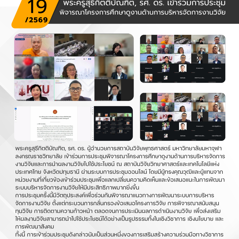 สถาบันวิจัยพุทธศาสตร์ มหาวิทยาลัยมหาจุฬาลงกรณราชวิทยาลัย เข้าชี้แจงต่อที่ประชุมสภาวิชาการ เกี่ยวกับบันทึกข้อตกลงความร่วมมือ (MOU) ระหว่างมหาวิทยาลัยมหาจุฬาลงกรณราชวิทยาลัย (มจร) กับสำนักงานส่งเสริมวิสาหกิจเพื่อสังคม (สวส.) เพื่อดำเนินงาน “ส่งเสริม สนับสนุน และพัฒนาเสริมศักยภาพผู้ประกอบการวิสาหกิจเพื่อสังคมและกลุ่มกิจการเพื่อสังคม” ในการนี้ รองศาสตราจารย์ ดร.กมลาศ ภูวชนาธิพงศ์ รองผู้อำนวยการสถาบันวิจัยพุทธศาสตร์ มจร ปฏิบัติหน้าที่แทนผู้อำนวยการสถาบันวิจัยพุทธศาสตร์...