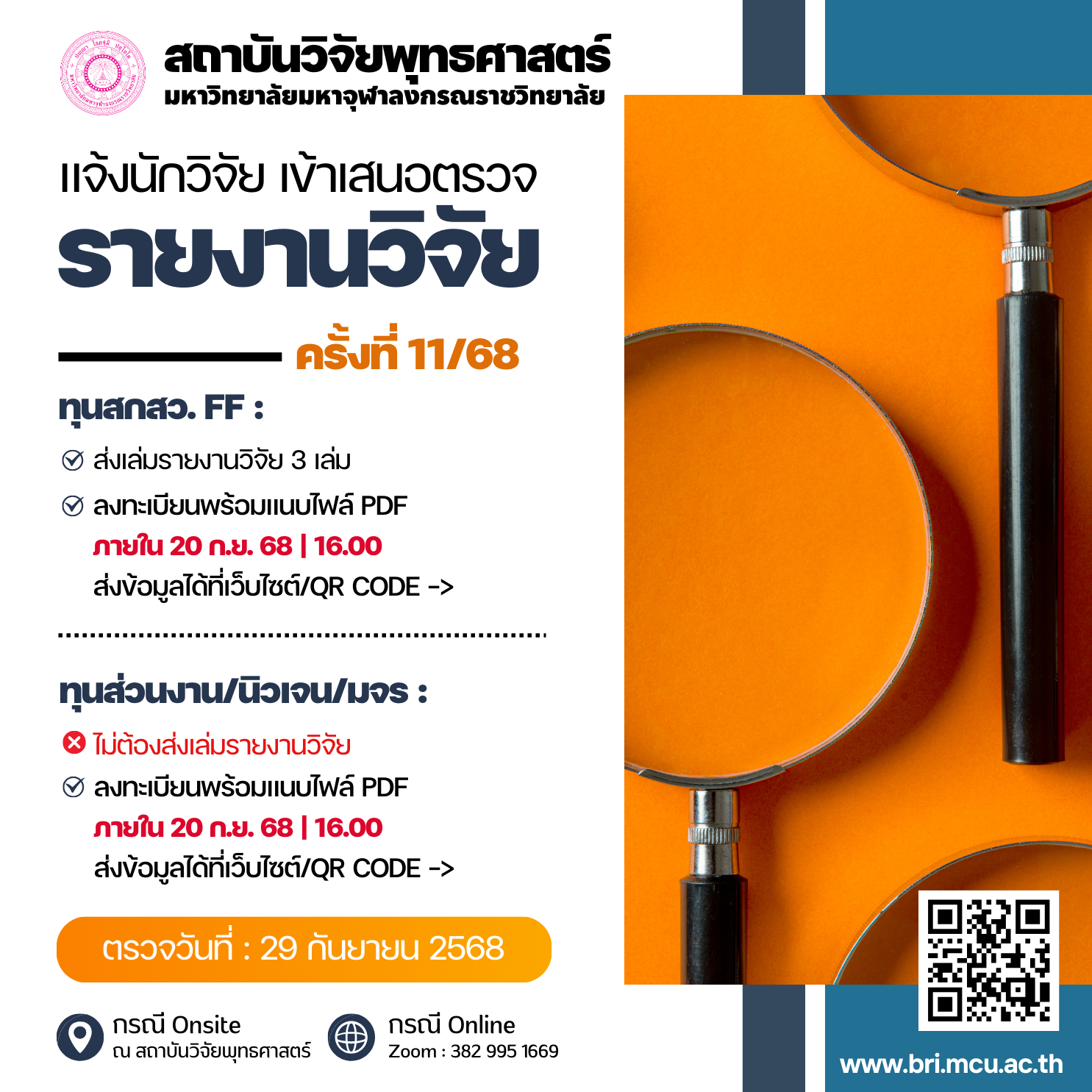 📌 แจ้งนักวิจัยเข้าเสนอตรวจรายงานวิจัย ครั้งที่ 11/68 (ประจำเดือนกันยายน 2568)