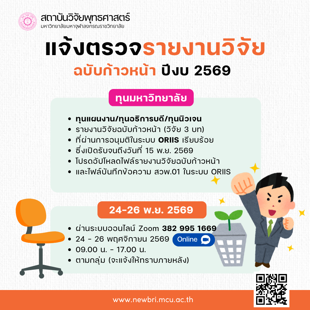 แจ้งตรวจรายงานวิจัยฉบับก้าวหน้า ปีงบ 2569 ทุนมหาวิทยาลัย