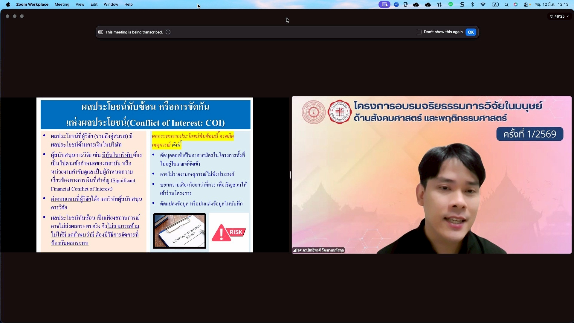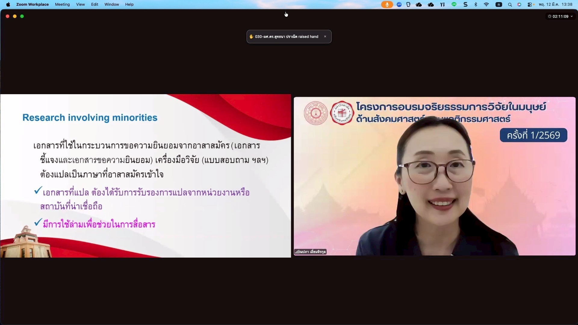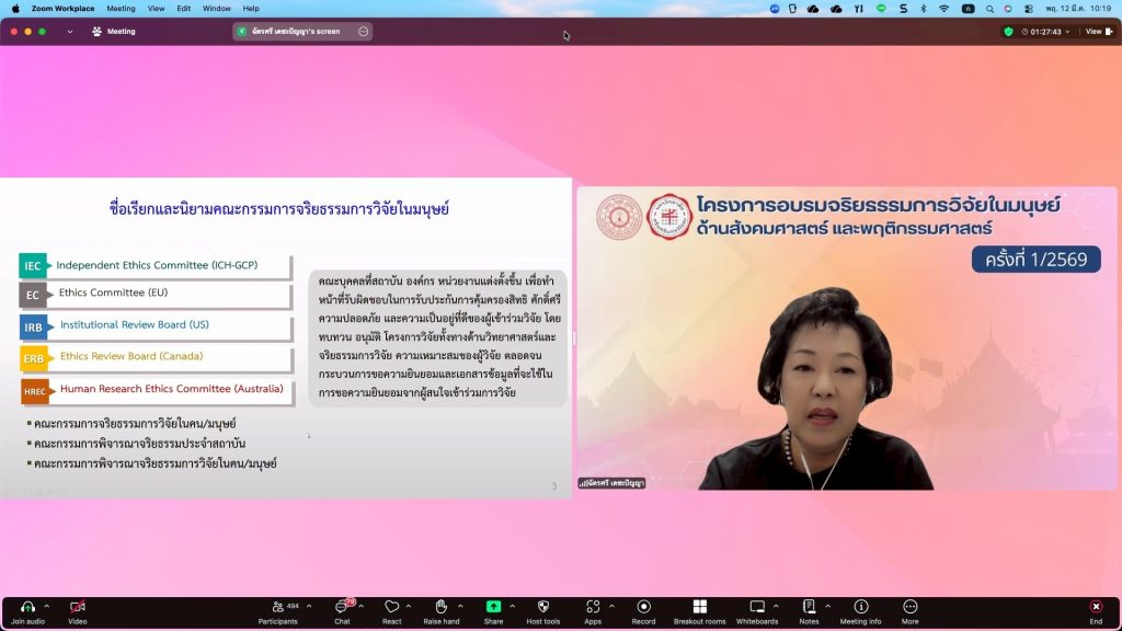 สถาบันวิจัยพุทธศาสตร์ มหาวิทยาลัยมหาจุฬาลงกรณราชวิทยาลัยร่วมกับ คณะกรรมการจริยธรรมสำหรับพิจารณาโครงการการวิจัยที่ทำในมนุษย์ มหาวิทยาลัยศรีนครินทรวิโรฒ จัดโครงการอบรมจริยธรรมการวิจัยในมนุษย์ด้านสังคมศาสตร์และพฤติกรรมศาสตร์ เรื่อง “หลักจริยธรรมการวิจัยในมนุษย์ หลักสูตรการปกป้องอาสาสมัคร (Human Subject Protection : HSP)” โดย ในวันที่ 12 มีนาคม 2569 เวลา 08.00 – 17.00 น. ผ่านระบบออนไลน์ ZOOM