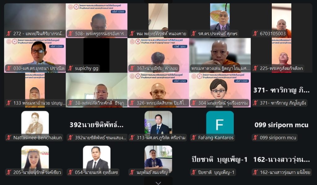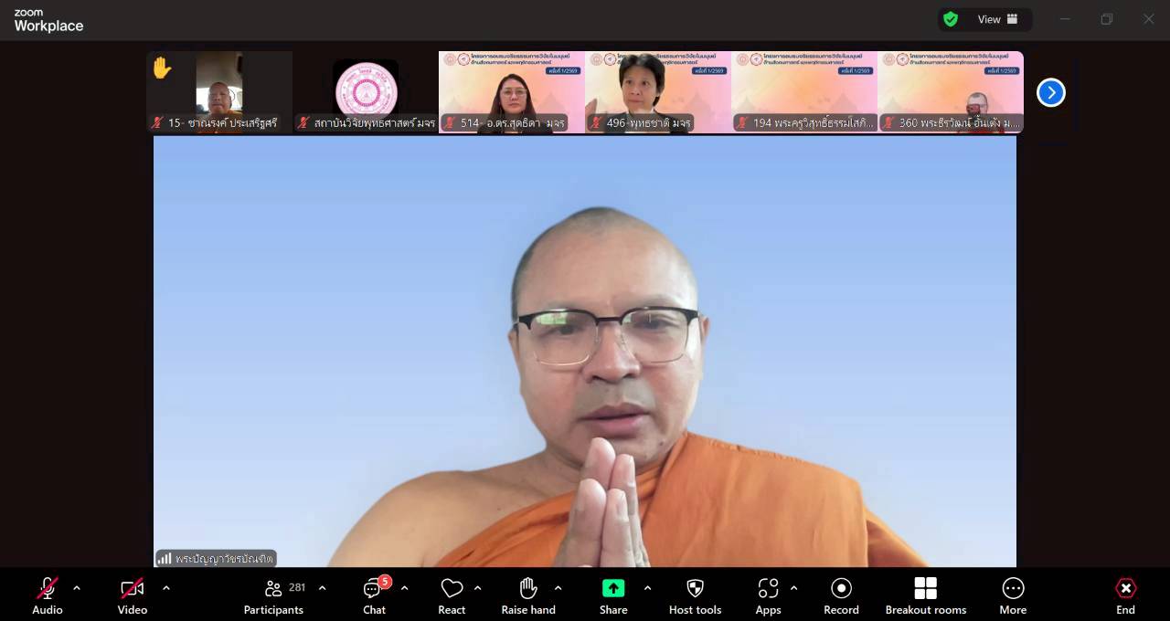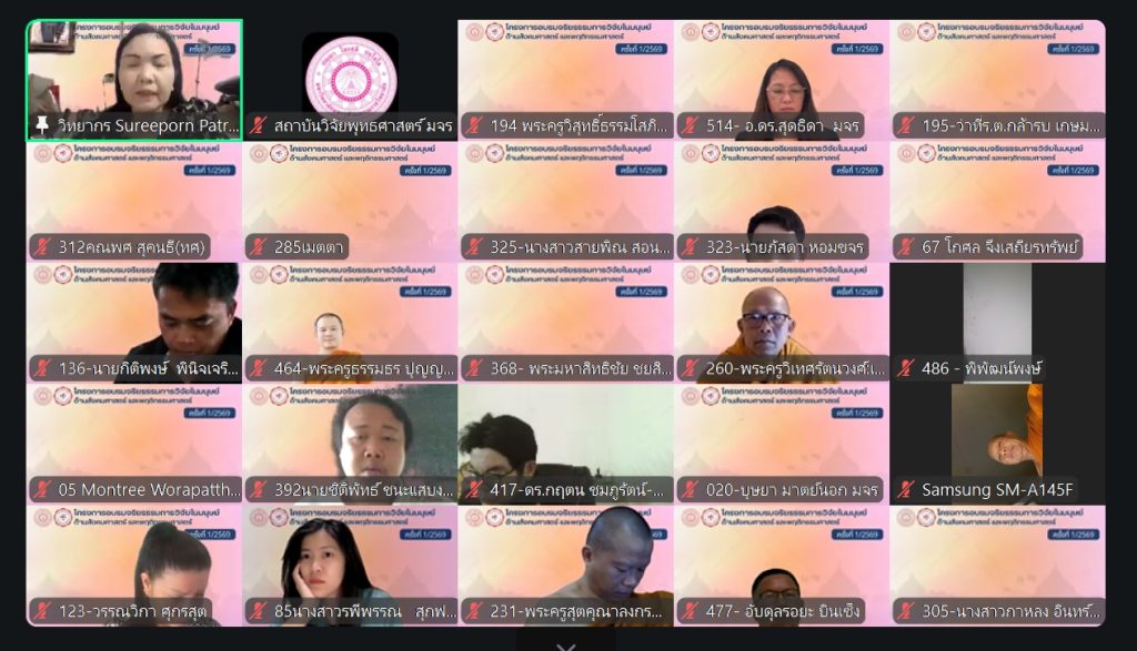 โดยมี พระปัญญาวัชรบัณฑิต, รศ.ดร. รองอธิการบดีฝ่ายวิชาการ เป็นประธานเปิดการอบรม และมี พระครูสุธีกิตติบัณฑิต, รศ.ดร. ผู้อำนวยการสถาบันวิจัยพุทธศาสตร์ เป็นผู้กล่าวรายงาน และวิทยากรประกอบด้วย พ.ญ.สุรีพร ภัทรสุวรรณ, ศ.ดร.ฉัตรศรี เดชะปัญญา, รศ.ดร.สิทธิพงศ์ วัฒนานนท์สกุล, ผศ. ดร. ทพญ.ณปภา เอี่ยมจิรกุล, นายปิยชาติ บุญเพ็ญ